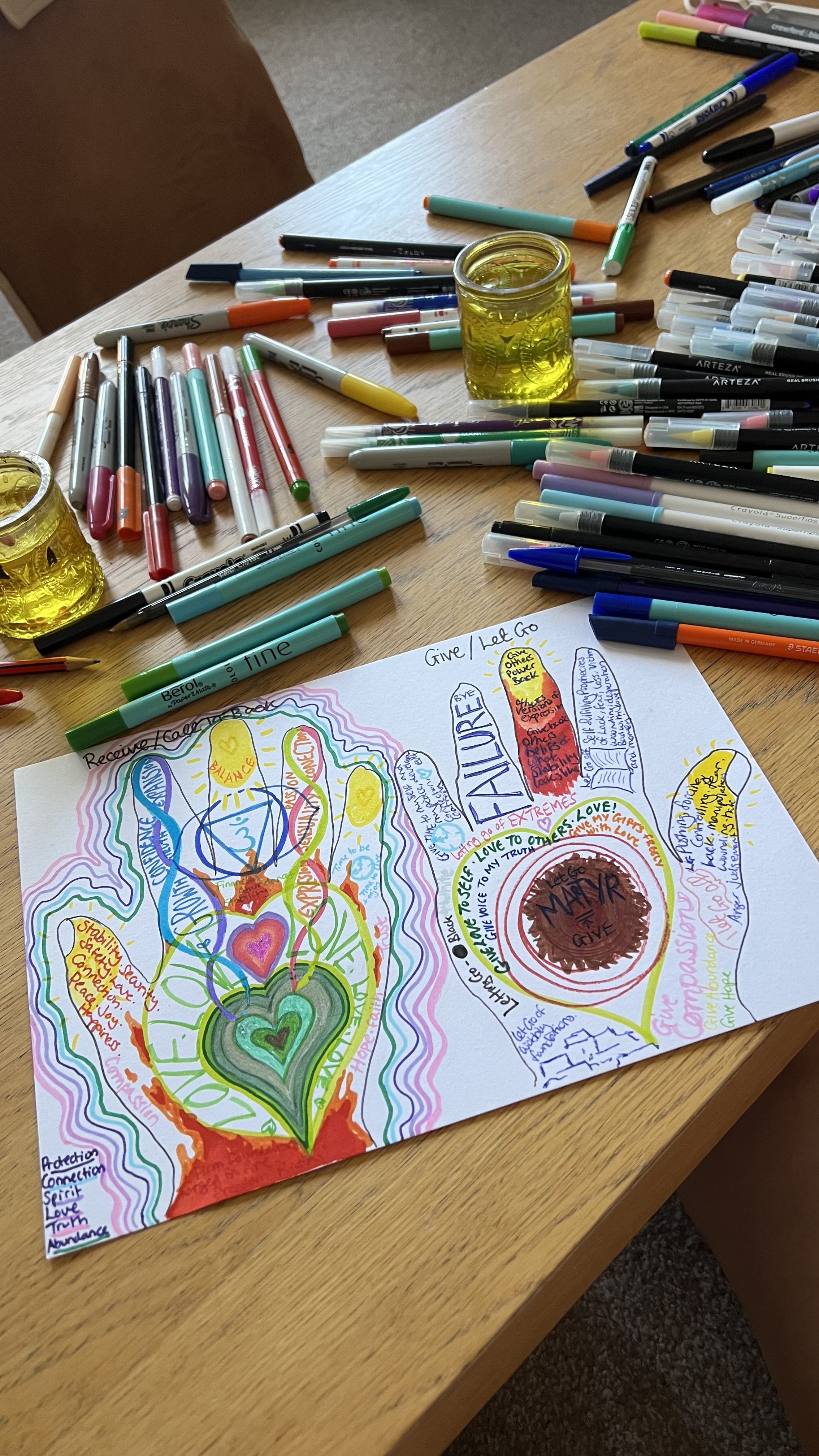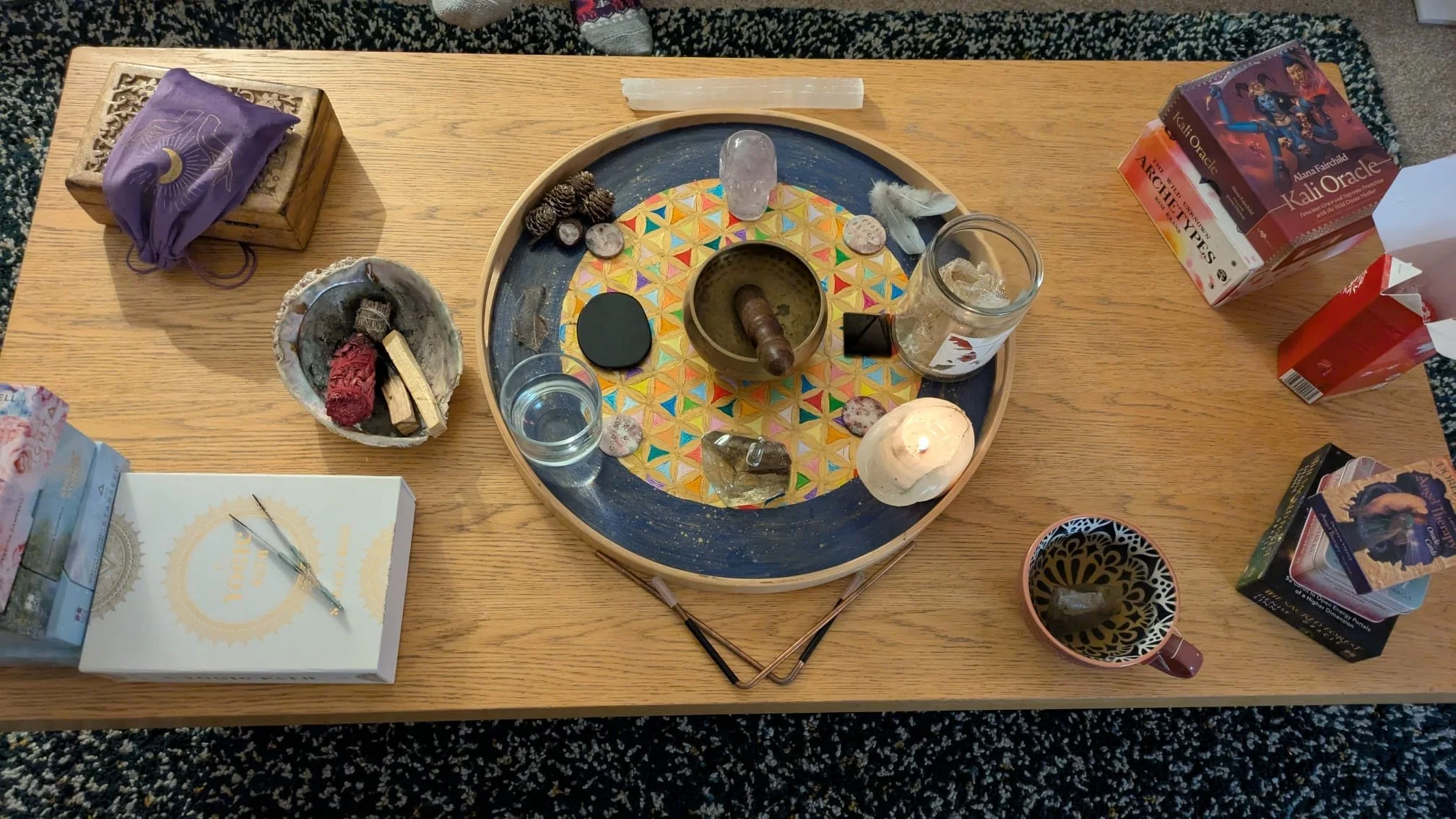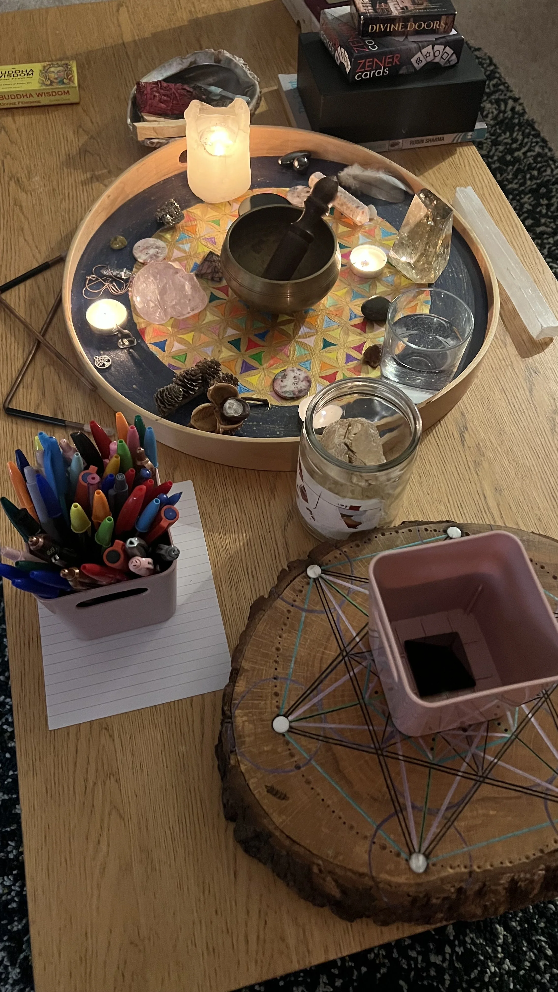 A weaving of ritual, reflection, embodiment practices, journaling prompts, intuitive discussion, breath, stillness, creativity, and spiritual tools.